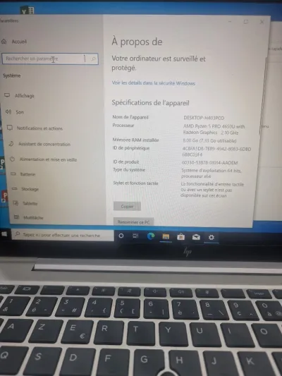 Hp ELITEBOOK 845 G7 AMD RYZEN 5 PRO 4650 U WITH RADEON GRAPHIE 2.10 GHz 8 GO RAM 256 SDI