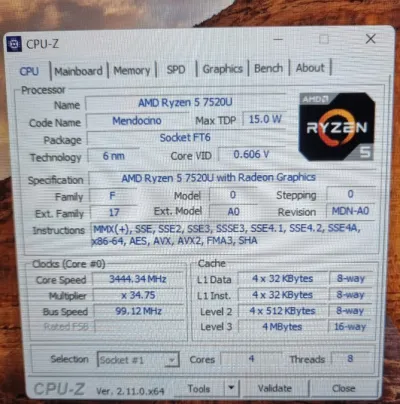 -processor : AMD Ryzen 5 3500U with Radeon Vega Mobile Gfx 2.10GHz -Ram : 8.00 GB DDR4 2400MHZ -disk : 1 TB HDD + 128 GB SSD -Graphics : AMD Radeon (TM) Vega 8 , VRAM : 2 GB -Batterie 96% -