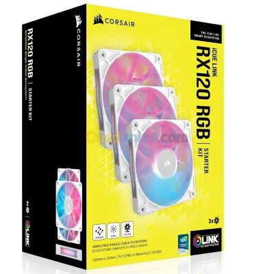 ✅ INFORMATIONS GÉNÉRALES : ✅ Désignation : CORSAIR RX120 RGB - KIT DE DÉMARRAGE - TRIPLE VENTILATEURS - 120MM PWM - ICUE - LINK - WHITE ✅ Marque : Corsair ✅ Modèle : CO-9051022-