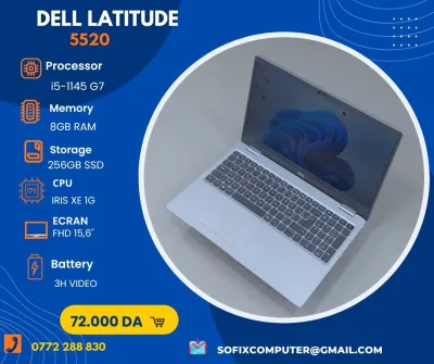 Disponible chez #Sofix computer plusieurs modèles et configurations une garantie de 6 mois LAPTOP DELL LATITUDE 5520 I5-1145 G7 8G 256G SSD 15,6". CPU: Intel I5-1145 G7 11éme génération