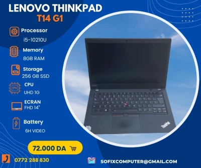 Disponible chez #Sofix computer plusieurs modèles et configurations une garantie de 6 mois LAPTOP LENOVO THINKPAD T14 G1 I5-10210U 8G 256G SSD 14". CPU: Intel I5-10210U 10éme génération