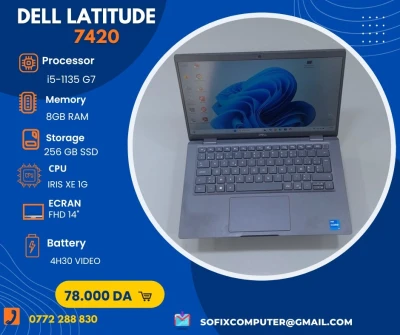 Disponible chez #Sofix computer plusieurs modèles et configurations une garantie de 6 mois LAPTOP DELL LATITUDE 7420 I5-1135 G7 I5-1135 G7 8G 256G SSD 14". CPU: Intel I5-1135 G7 11eme gén�