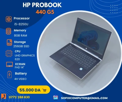 Disponible chez #Sofix computer plusieurs modèles et configurations une garantie de 6 mois LAPTOP HP PROBOOK 440 G5 I5-8250U 8G 256G SSD 14". CPU: Intel I5-8250 8éme génération RAM : 8G