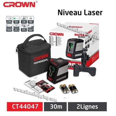 Niveau Laser 3x360° 3D 30m Avec Télécommande CROWN | CT44048-RMC Fiche technique : Faisceaux projetés : 2V 1H Plage de travail : 30 mètres Précision de nivellement - faisceau horizo