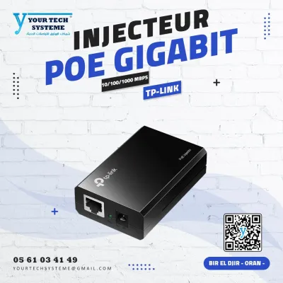 Injecteur PoE Gigabit TP-Link — Alimentation et transmission de données via un seul câble réseau. ✔️ Marque : TP-Link ✔️ Type : Injecteur PoE (Power over Ethernet) ✔️ Vites
