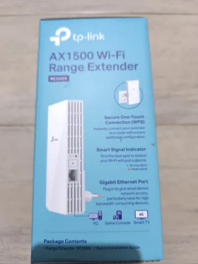 À vendre, un répéteur/extenseur WiFi TP-Link RE500X, neuf et jamais utilisé. Idéal pour étendre la couverture de votre réseau WiFi dans toute la maison. Caractéristiques principales
