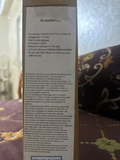 PC HP neuf jamais utiliser F carton HP 15-FD0309NK I5 Système d'exploitation Windows 11 Édition Familiale unilingue Famille de processeurs Processeur Intel® Core™ i5 de 13e générat