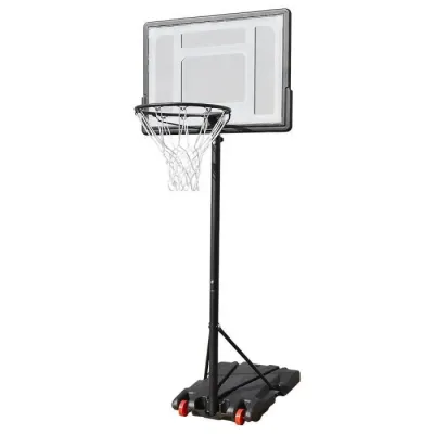 Anneau de basket en métal, diamètre 25 cm Cible / panneau arrière en plastique, dimensions 56.5× 40 cm Inclus : filet, balle de basketball et pompe