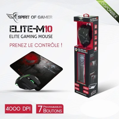 ELITE-M10 + TAPIS SPIRIT OF GAMER 💀 ENSEMBLE SOURIS FILAIRE ET TAPIS DE SOURIS CAPTEUR OPTIQUE 4000 DPI - 7 BOUTONS PROGRAMMABLES - RÉTRO-ÉCLAIRAGE RGB SOURIS SANS FIL POUR GAMER - DROI