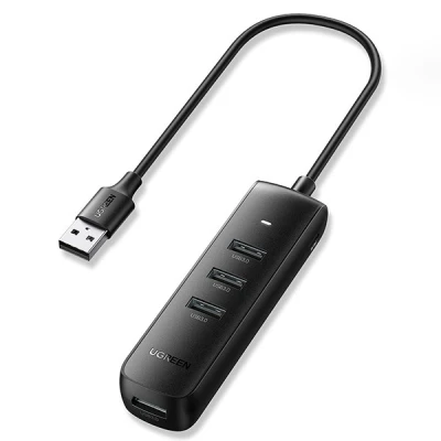 Nouveau Connectez vos périphériques à votre ordinateur portable avec le hub USB-C 4-en-1 Ugreen. La connexion hôte USB-C mène à quatre ports USB-A et fonctionne sur l’interface U