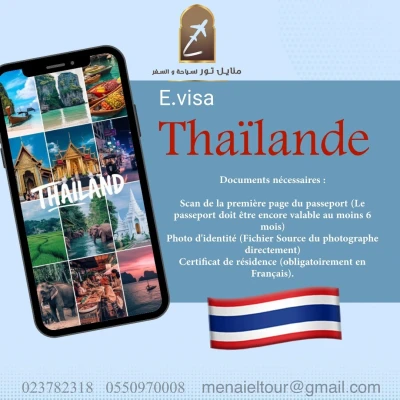 Visa Thaïlande. Visa touristique 30 jours 16.000,00 DZD Document nécessaire : 1. Scan Passeport (Valide au moins 6 mois à partir de la date d'arrivée). 2. Scan Photos Récentes fond