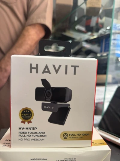 La webcam Havit HV-HN11P 1080P Spécifications : • Type : Caméra Web • Matériel:ABS • Capteur d'image : CMOS • Résolution dynamique : 1920 x 1080 • Haute définition: 2MP • F