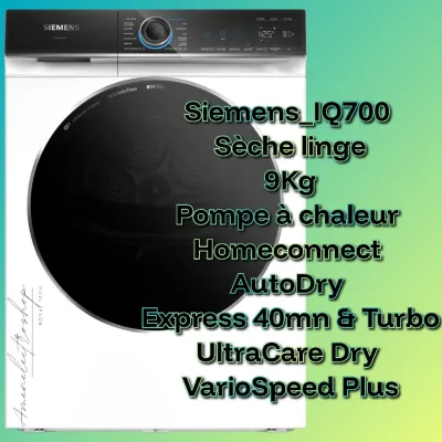 Sèche linge 9Kg/ Siemens_IQ700/ homeconnect AutoDry pompe à chaleur