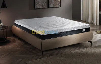 Matelas Future Technology Massage: Côté A: Tissus renbouré de maille blanc 100% fibre aux propriétés annalergiques. Côté B : Coutil en maille noir 100% fibre aux propriétés anna