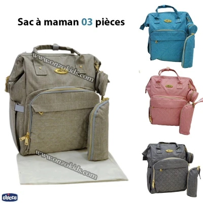 Description: Le sac à maman Chicco en trois pièces est l’accessoire parfait pour les mamans modernes qui recherchent à la fois style et fonctionnalité. Conçu avec une attention métic