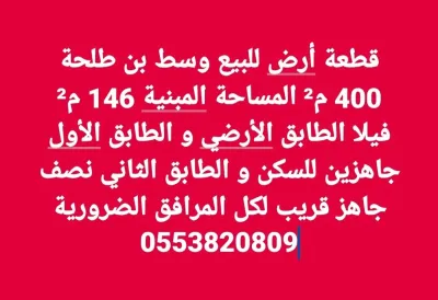 A vendre un terrain de 400 m² avec villa rez-de-chaussée et 1ère étage fini et le deuxième étage semi fini la superficie bâti 147 m² avec actes et livres de foncée proche de toutes