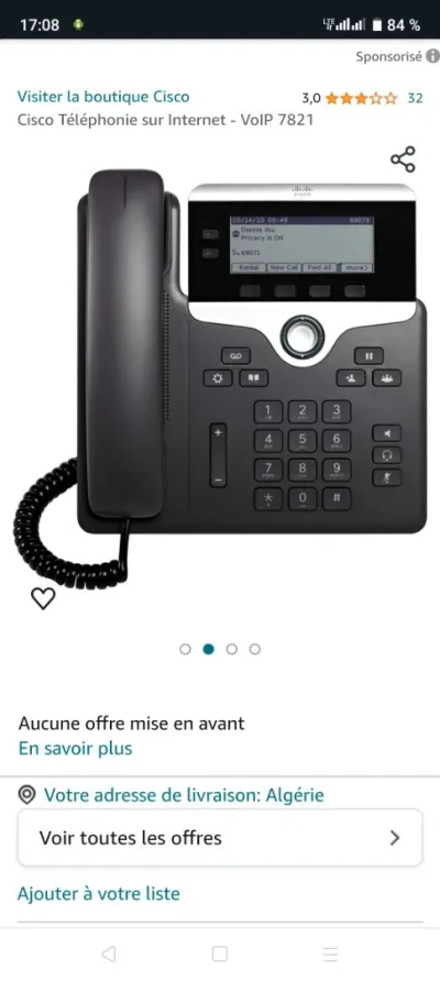 IP Phone CISCO CP-7821-K9 Pour une administration simple et économique Produits sous emballage 26 milles dinars