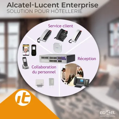 Alcatel-Lucent SOLUTION POUR HÔTELLERIE Détails de la solution Solution native d’hôtellerie intégrée: l’OXO Connect permet de subvenir aux besoins spécifiques de l’hôteller