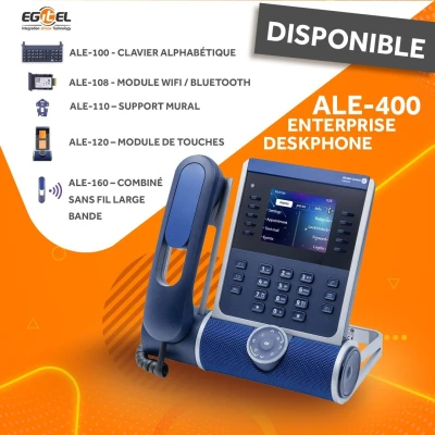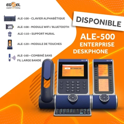 📱 Vue d’ensemble Le ALE‑500 est le modèle haut de gamme de la série Enterprise DeskPhones. Il dispose d’un écran tactile vertical de 5,5″ (720 × 1280 px), d’un clavier n