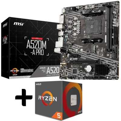 Kit CARTE MERE MSI A520M-A PRO AMD DDR4 HDMI/DVI/USB 3.0 X4/USB 2.0 X2 (Ryzen AM4) plus Processeur Ryzen 5 3400G Box