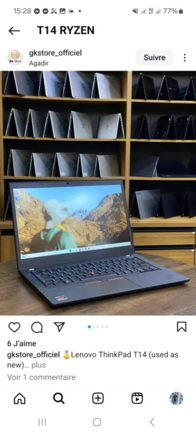 PC DE GAMME PROFESSIONNEL 14" MARQUE : THINKPAD T14 LENOVO ETAT: 10 SUR 10 GARANTIE : 3 Mois 📃⏳ ---------------------------------------------------------- PROCESSEUR : RYZEN 7 5850U