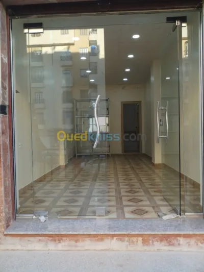 Local à vendre 25.71 M² rez de chausser + 1 etage (2etage) سفلي وعلوي 2 Façades (2 sortie + 2entrée) vitrine en verre (nouvelle modelle 2 porte) Eau + Electricité (380W)