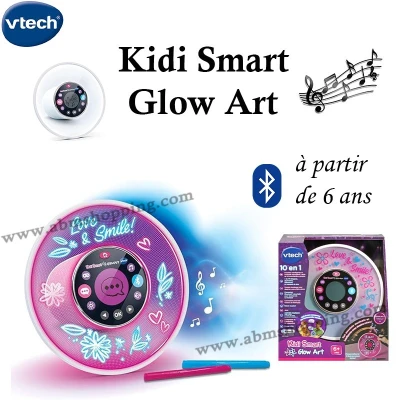 ÂGE pour les enfants dès 6 ans, enceinte musicale intelligente avec effet néon PERSONNALISABLE l’enfant peut écrire et dessiner sur le contour de l’enceinte avec les feutres effet n�
