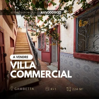 Réf : AVV0001932 A vendre une villa commercial d’une superficie totale de 224 m², R+1, façade de 11 m , 7 pieces , Garage , située a gambetta, Oran. -acte notarié et livret foncier