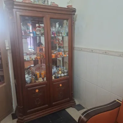 Je vends une belle argenterie en bois massif, très propre et bien entretenue. – Verre propre sans fissures – 3 étagères en verre – Style classique et élégant
