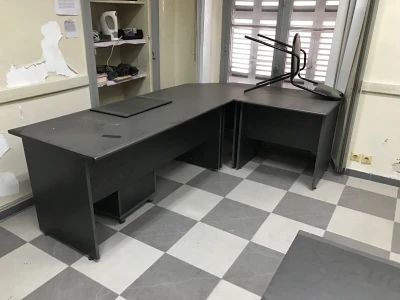 01 armoire métallique 02 portes, 02 chaises opérateur, 01 fauteuil de direction en tissu avec accoudoirs, 01 armoire coffre fort, 01 bureau de direction avec tiroirs, 04 chaises de récep