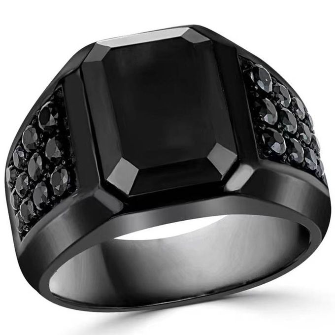 Chevaliere en acier inoxydable, avec une largeur de 18 millimètres, unisexe et pour et tous les âges de couleur noir brillant couronné par une belle pierre rouge, les tailles dispon
