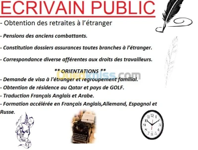 - Obtention des retraites à l’étranger - Pensions des anciens combattants - Constitution dossiers assurances toutes branches à l’étranger - Correspondance diverse afférentes aux