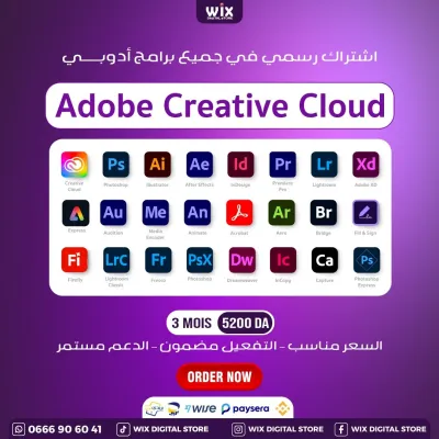 On Vous propose les produits Adobe CC : 2019 ( windows 7 ) - 2020 - 2021 -2022 - 2023 ( windows 10 ) - Adobe Photoshop CC 2023 - Adobe Illustrator CC 2023 - Adobe Premiere Pro CC 2023 -