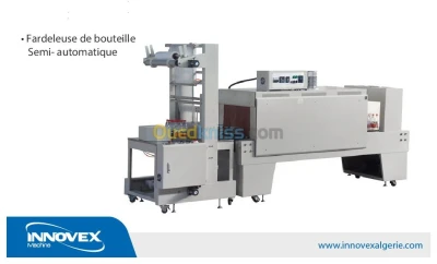 ST- 6040Q + TUNNEL Fardeleuse de bouteille semi-automatique; Machine semi-automatique pour fardeler une très vaste gamme de produits (bouteilles, vases, boites, cannettes, flacons, tro