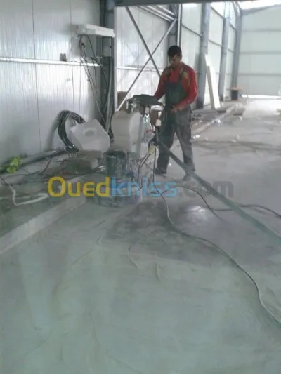 Entreprise a Oran spécialiste en fournitures et pose résine époxy et chape béton avec talochage mécanique hélicoptère déplace 58 wilayas