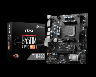 ✅INFORMATIONS GÉNÉRALES : ✅Désignation : MSI B450M-A PRO MAX II - MICRO-ATX - AMD SOCKET - 2X DDR4 - M.2 PCIE 3.0 - USB 3.0 - PCI-E 3.0 ✅Marque : MSI ✅Modèle : B450M-A PRO MAX