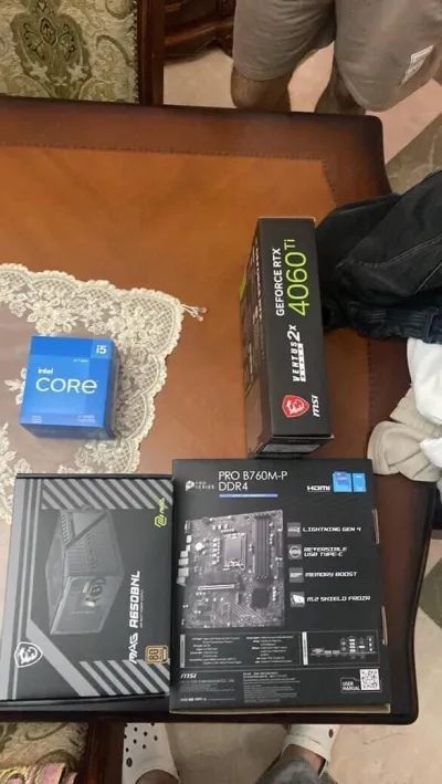 •CPU: Intel i5 14400f •GPU: Asus Rtx 4060 Ti (8Gb) •Motherboard: Gigabyte B760M Gaming DDR4 •Ram: 32 Gb DDR4 3200Mhz (16×2) •SSD: 512 GB •WaterCooling: Raidmax LS240 ARGB •PS