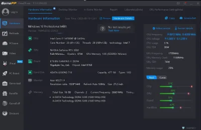 PROCESSEUR i7 14700kf + water cooling 360 hybrok carte mere B760M GAMING X DDR4 GPU RTX 3080 10G GAMEROK max temp 72 furmark SSD NVME LEGEND 512G RAM 16G DDR4 3200 Alimentation EVGA 850w