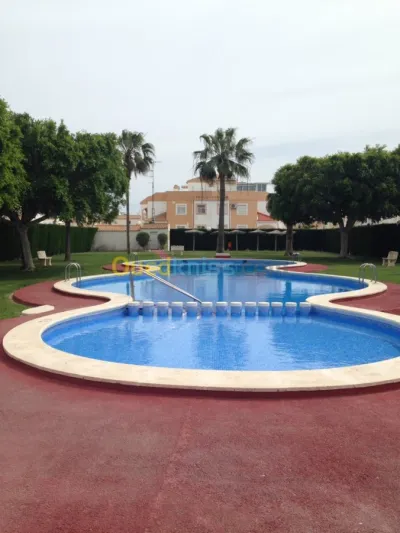 Jolie maison individuelle pour location à Torrevieja Espagne . Ville balnéaire à 50km d’Alicante , très animée . La maison est dans une résidence fermée . Il y a une piscine pour le