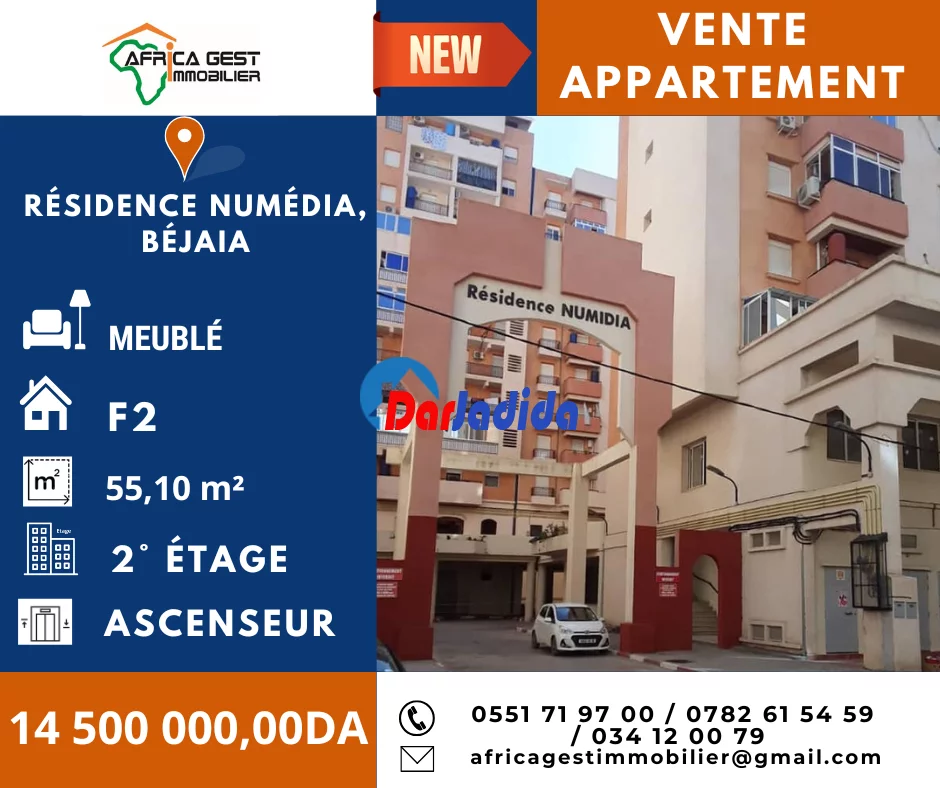 🏢 (Réf : VA/806) Résidence NUMIDIA – Appartement F2 Meublé à Vendre 📍 Emplacement stratégique – proche de toutes commodités L’agence vous propose en vente un superbe appart