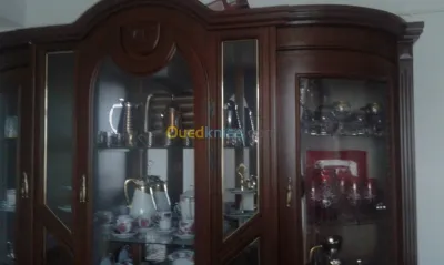 Je vends une salle à manger composée d'une bibliothèque en hêtre très jolie bien sculptée encore toute neuve , une argenterie et une table de 8 chaises très solide et très jolie avec