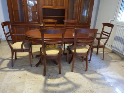 Table 6 chaises et bibliothèque d’importation à vendre Bois d’excellente qualité Table extensible Pas de vente séparément Prix : 58000da