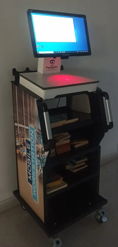 Une station de travail mobile équipée de lecteurs RFID et code barres pour le traitement des livres dans les zones de stockage de bibliothèque est un outil innovant conçu pour améliorer