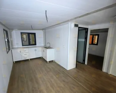 Cabine préfabriqués 3X7 avec barreaudage 02 chambres séparés fenêtres avec barreaudage panneau sandwich 40mm Gouttière Gerflex Baguette plinthe en pvc Installation électrique