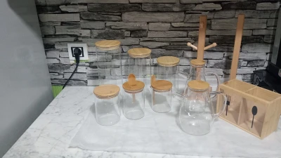 Bocaux en verre avec support pour épices, sucre, café...ect