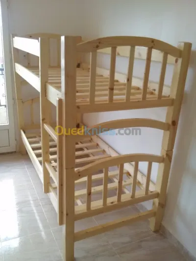 سرير اثنان أو ثلاث طوابق من الخشب الأحمر .أنيق .قوة التحمل للكبارDeux ou trois lits superposés en bois rouge. Élégants et résistants,
