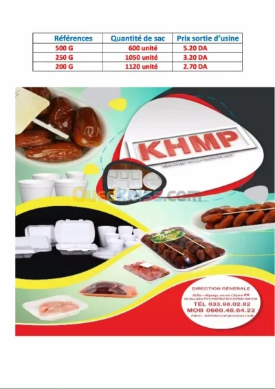 Barquettes et boites à emporté en polystérène pour tous les produits alimentaires ( dattes , gateau , fruits , légumes , pizza . Humburger , plats et bols jetable etc ......) Boites e