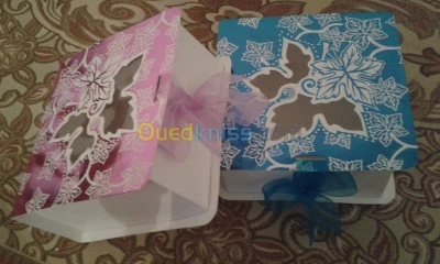 bariza wedding a le plaisir de vous proposer ses services de fabriquation de boites de gateaux personnalisées pour vos mariages , baptemes soutenance ainsi que des cartes d'invitées des at