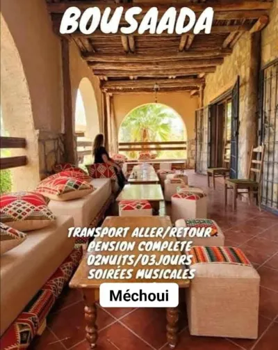 🔥 PROGRAMME WEEK-END BOUSSAADA 🔥 Nous vous propose un séjour somptueux et un service hors pair à la ville du bonheur pour vivre un contraste magique dans une magnifique maison d’h�