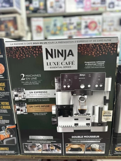 NINJA Machine à café Luxe Essential 2-en-1, Latte, Cappuccino et Espresso avec broyeur à grains et mousseur à lait intégrés, facile à utiliser, 2 préréglages mousse, argent, ES501EU